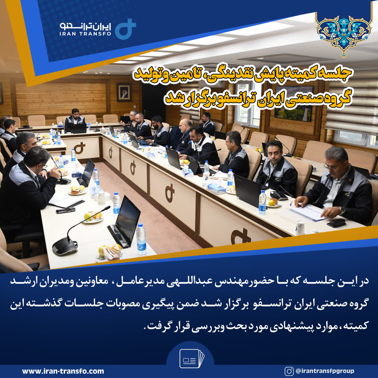جلسه کمیته پایش نقدینگی، تامین وتولید گروه صنعتی ایران ترانسفو برگزار شد