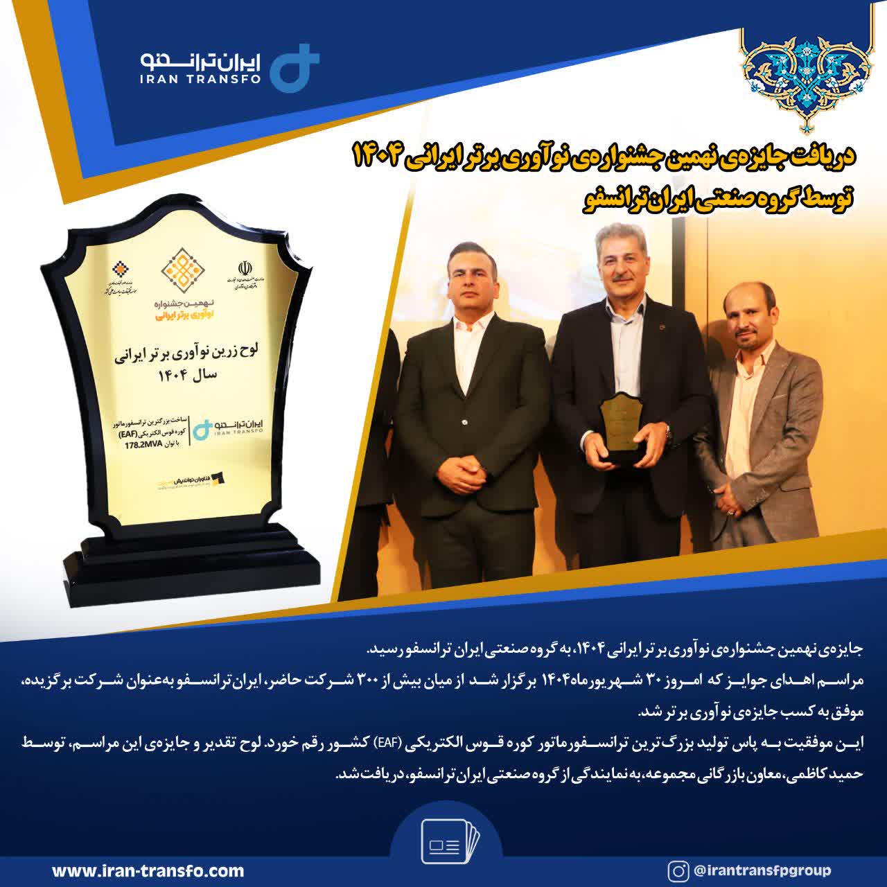 دریافت جایزهی نهمین جشنوارهی نوآوری برتر ایرانی 1404 توسط گروه صنعتی ایرانترانسفو