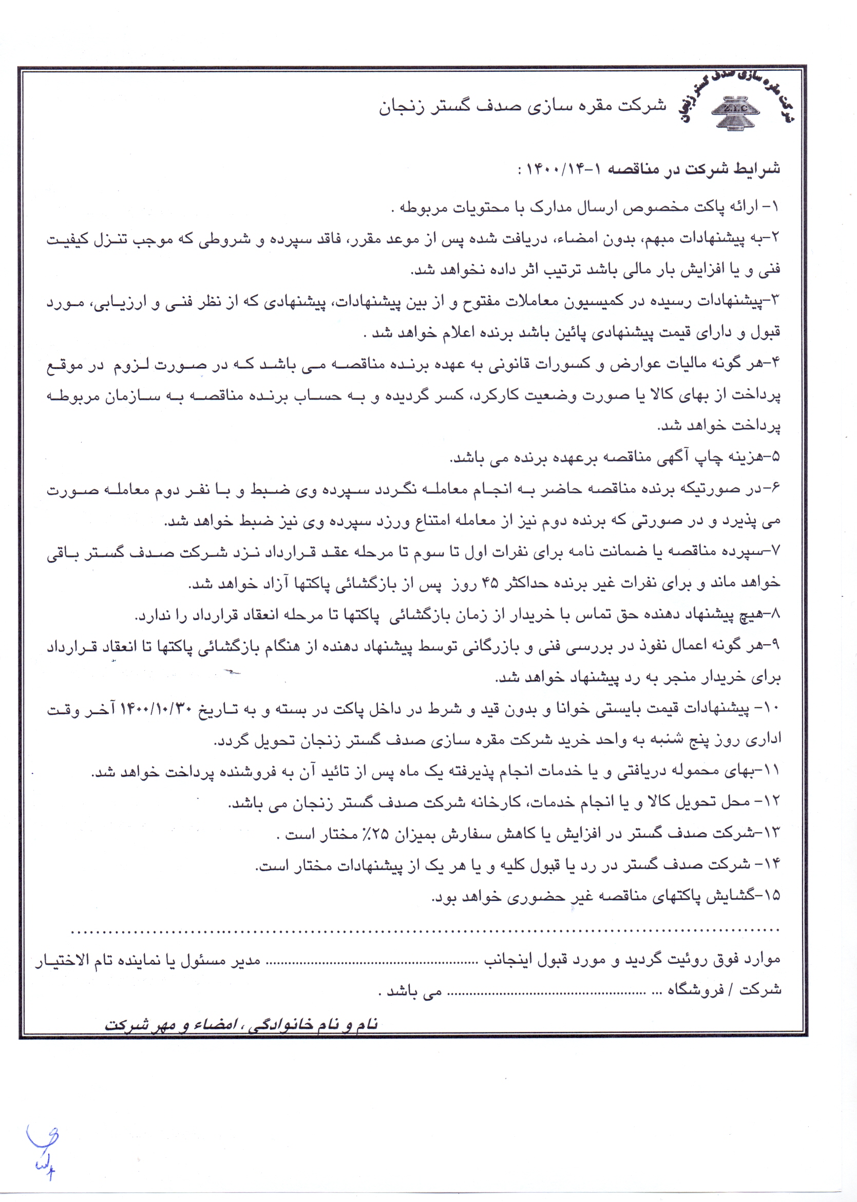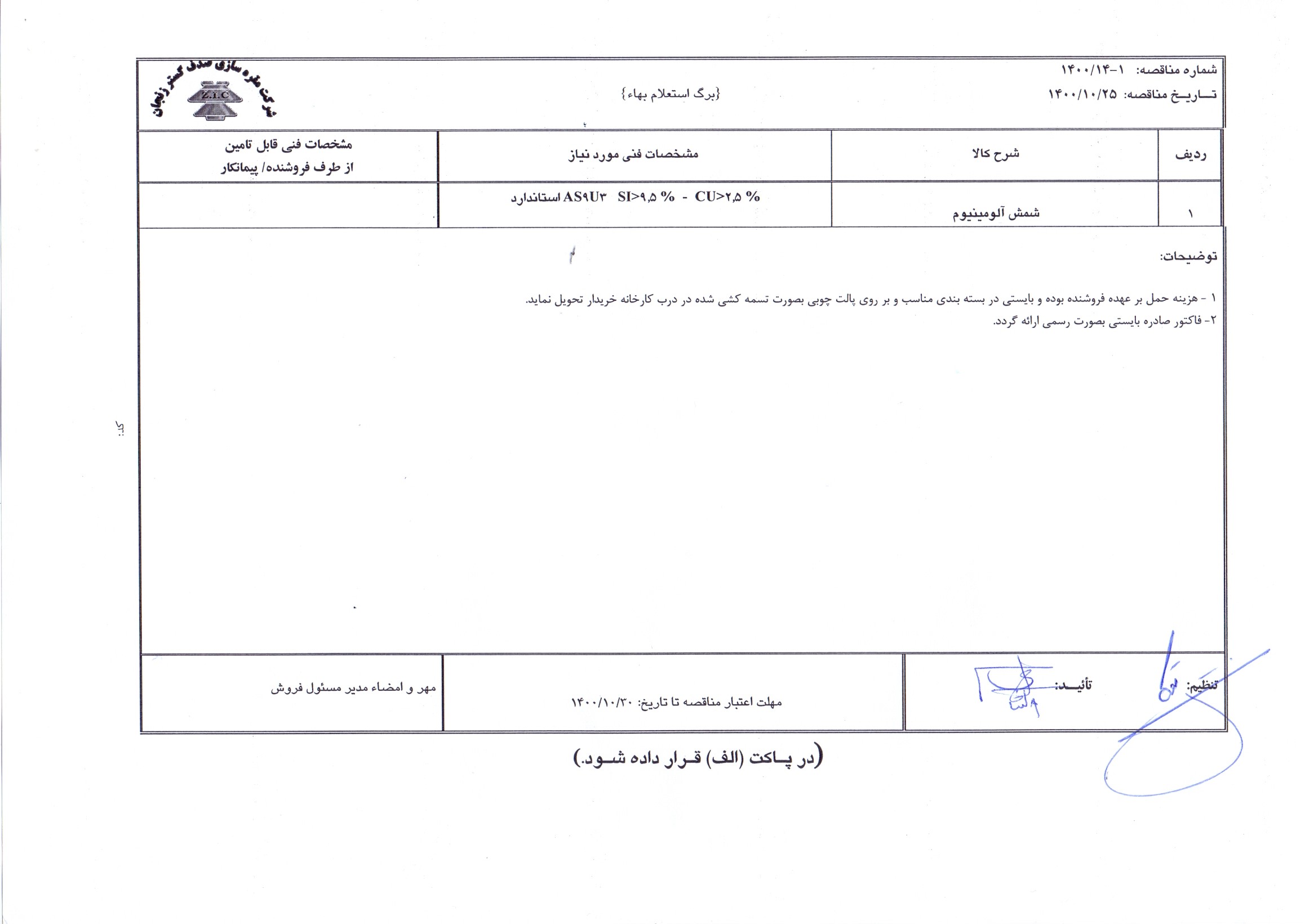 مناقصه خرید 10 تن شمس آلومینیوم / شرکت مقره سازی صدف گستر