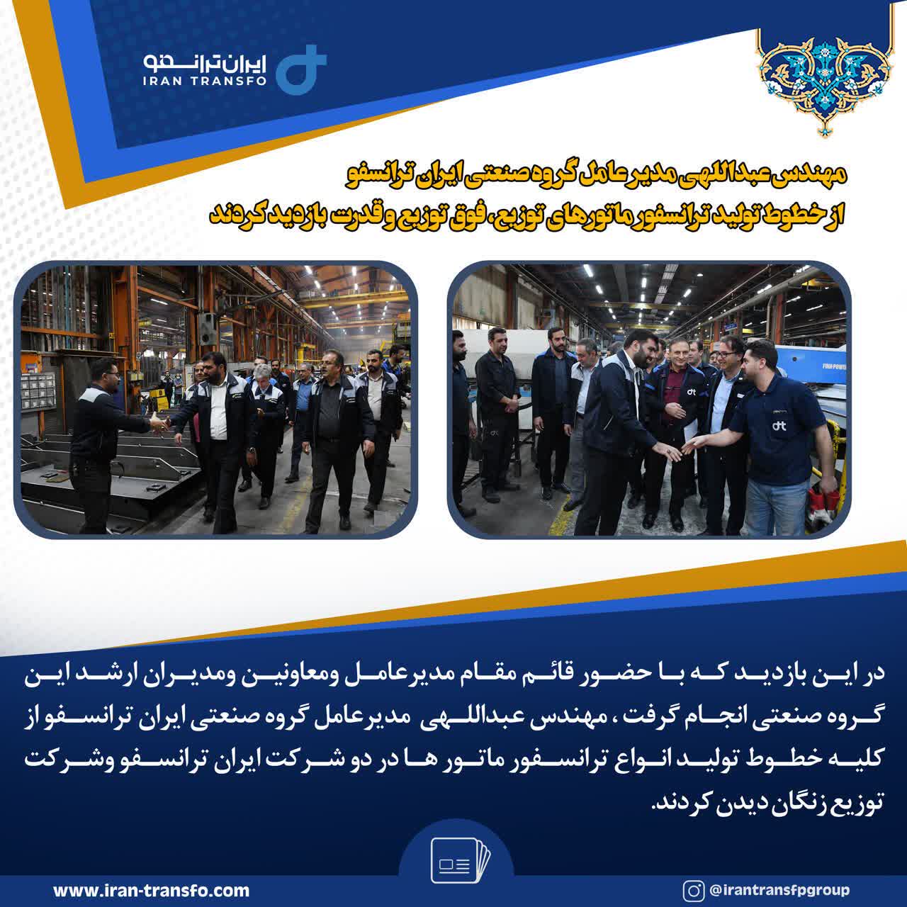 مهندس عبداللهی مدیر عامل گروه صنعتی ایران ترانسفو از خطوط تولید ترانسفور ماتورهای توزیع، فوق توزیع و قدرت بازدید کردند