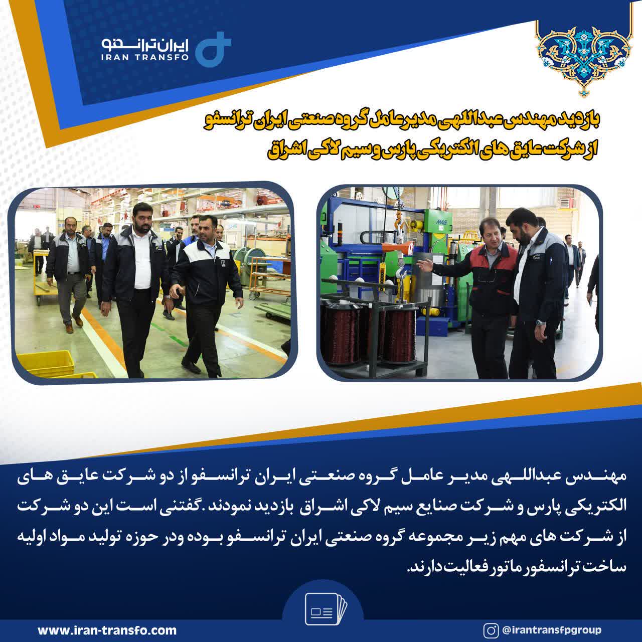 بازدید مهندس عبداللهی مدیرعامل گروه صنعتی ایران ترانسفو از پنج شرکت اقماری این گروه تولیدی
