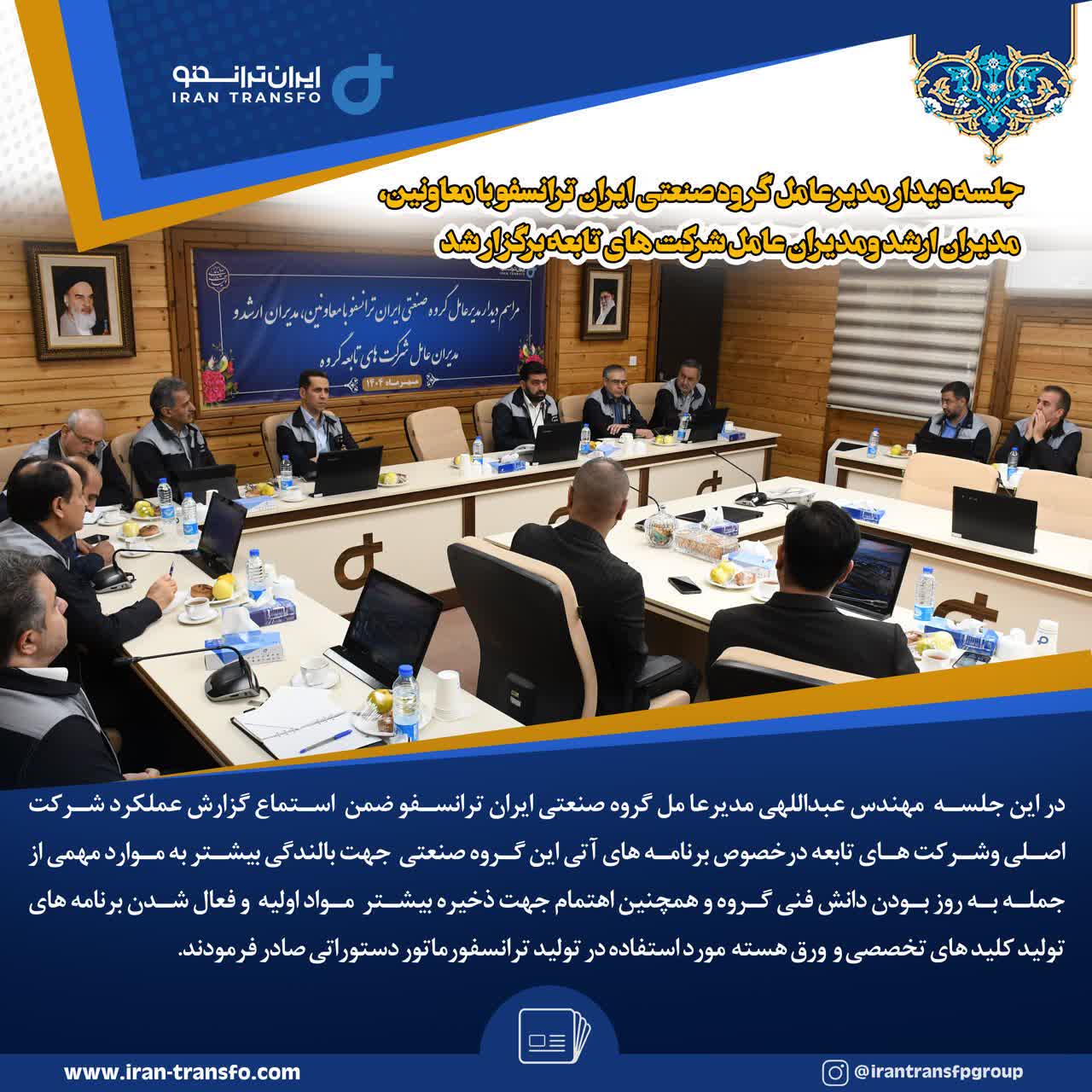 جلسه دیدار مدیرعامل گروه صنعتی ایران ترانسفو با معاونین، مدیران ارشد ومدیران عامل شرکت های تابعه برگزار شد