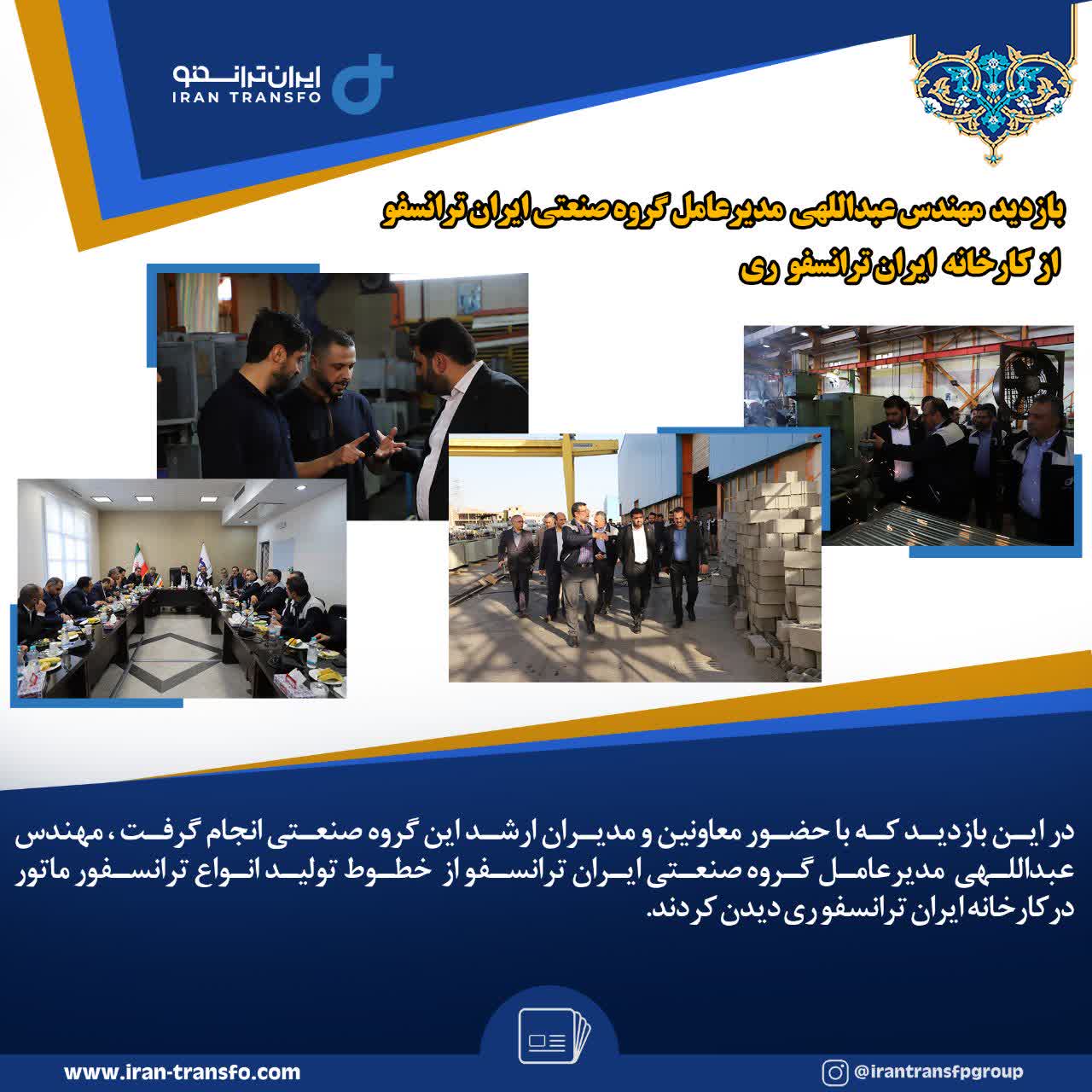 بازدید مهندس عبداللهی مدیرعامل گروه صنعتی ایران ترانسفو از کارخانه ایران ترانسفو ری