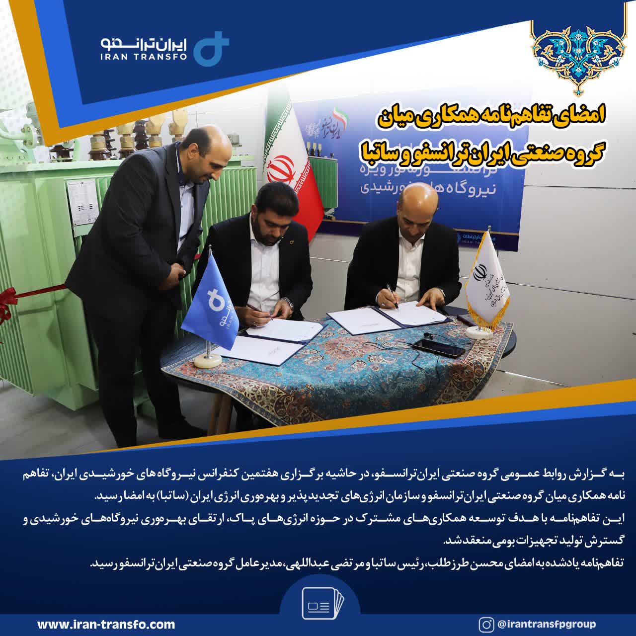 امضای تفاهمنامه همکاری میان گروه صنعتی ایرانترانسفو و ساتبا