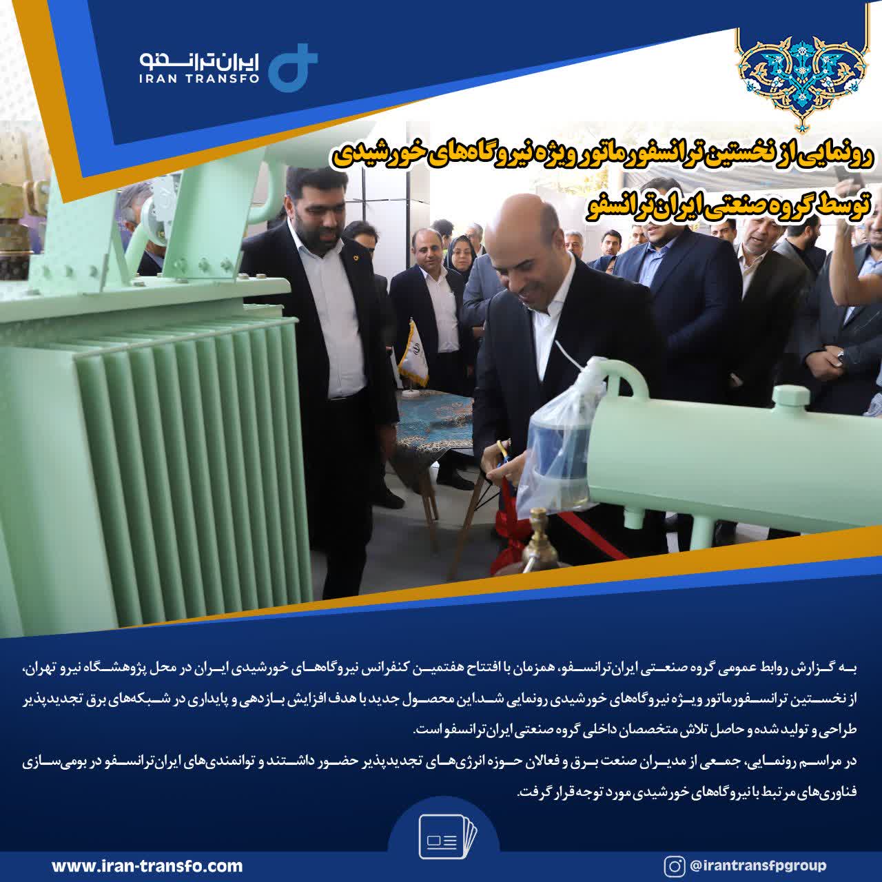رونمایی از نخستین ترانسفورماتور ویژه نیروگاههای خورشیدی توسط گروه صنعتی ایرانترانسفو