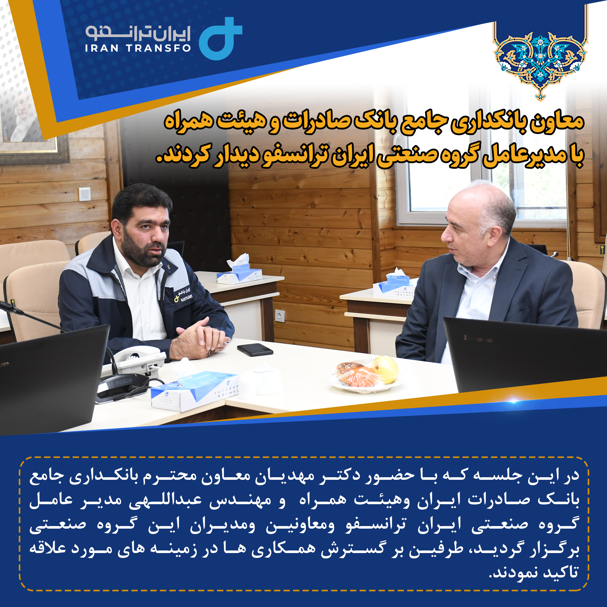معاون بانکداری جامع بانک صادرات و هیئت همراه با مدیرعامل گروه صنعتی ایران ترانسفو دیدار کردند.